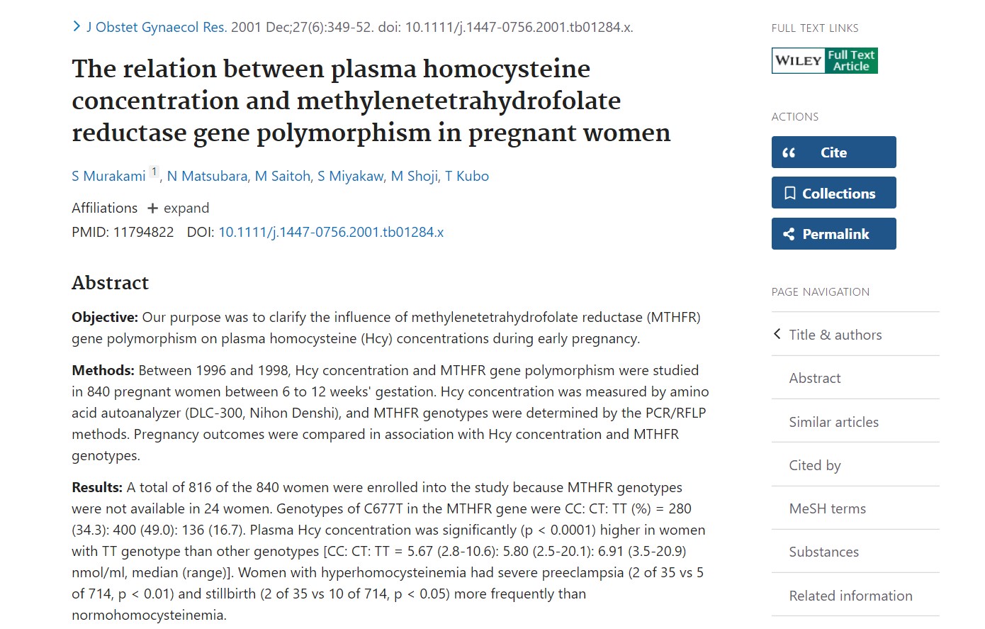 I 2002, en stor japansk kohortstudie (840 kvinner, 6–12 ukers svangerskap) publisert i The Journal of Obstetrics and Gynekologiforskning stivnet kjeden: TT → Hcy-stigning → uønsket graviditet resultater.