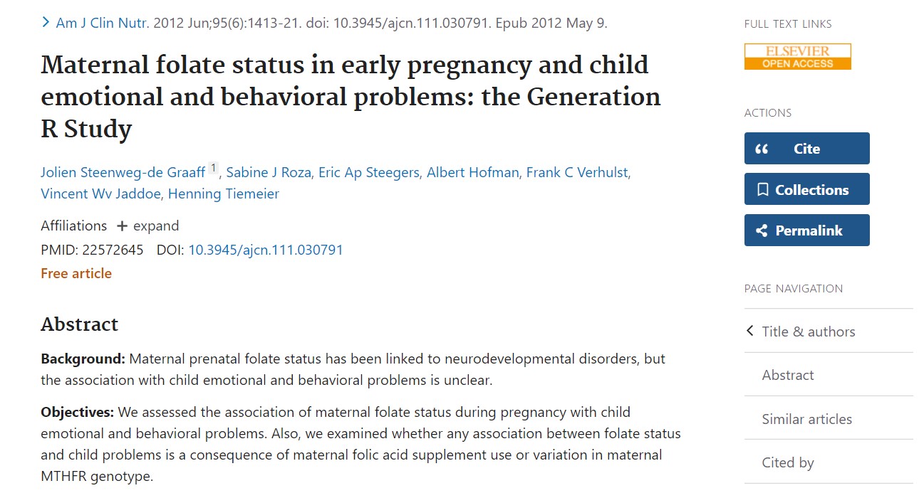 Denne studien, kjent som Generation R-kohortstudien og publisert i den autoritativeAmerican Journal of Clinical Nutrition, uthevet en sammenheng mellom folat og barns emosjonelle utvikling, forskjellig fra dens velkjente rolle i å forhindre nevralrørsdefekter.