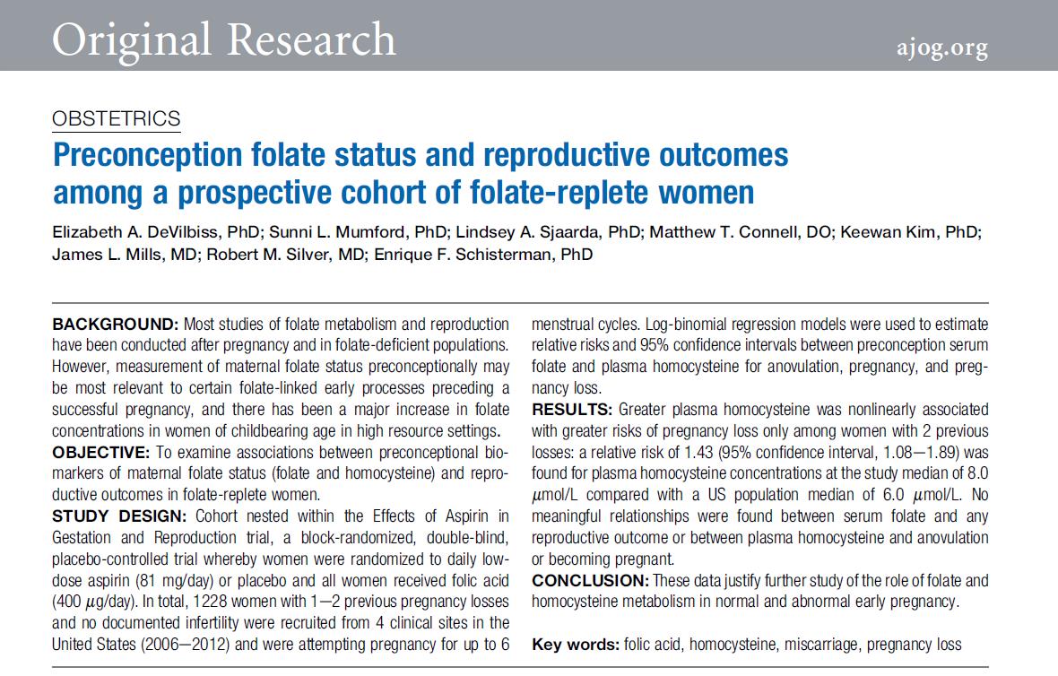 Forskere fulgte prospektivt 1228 kvinner med en historie på en eller to tidligere spontanaborter som konsekvent supplerte med 400 µg folsyre syre daglig. Funnene avslørte: