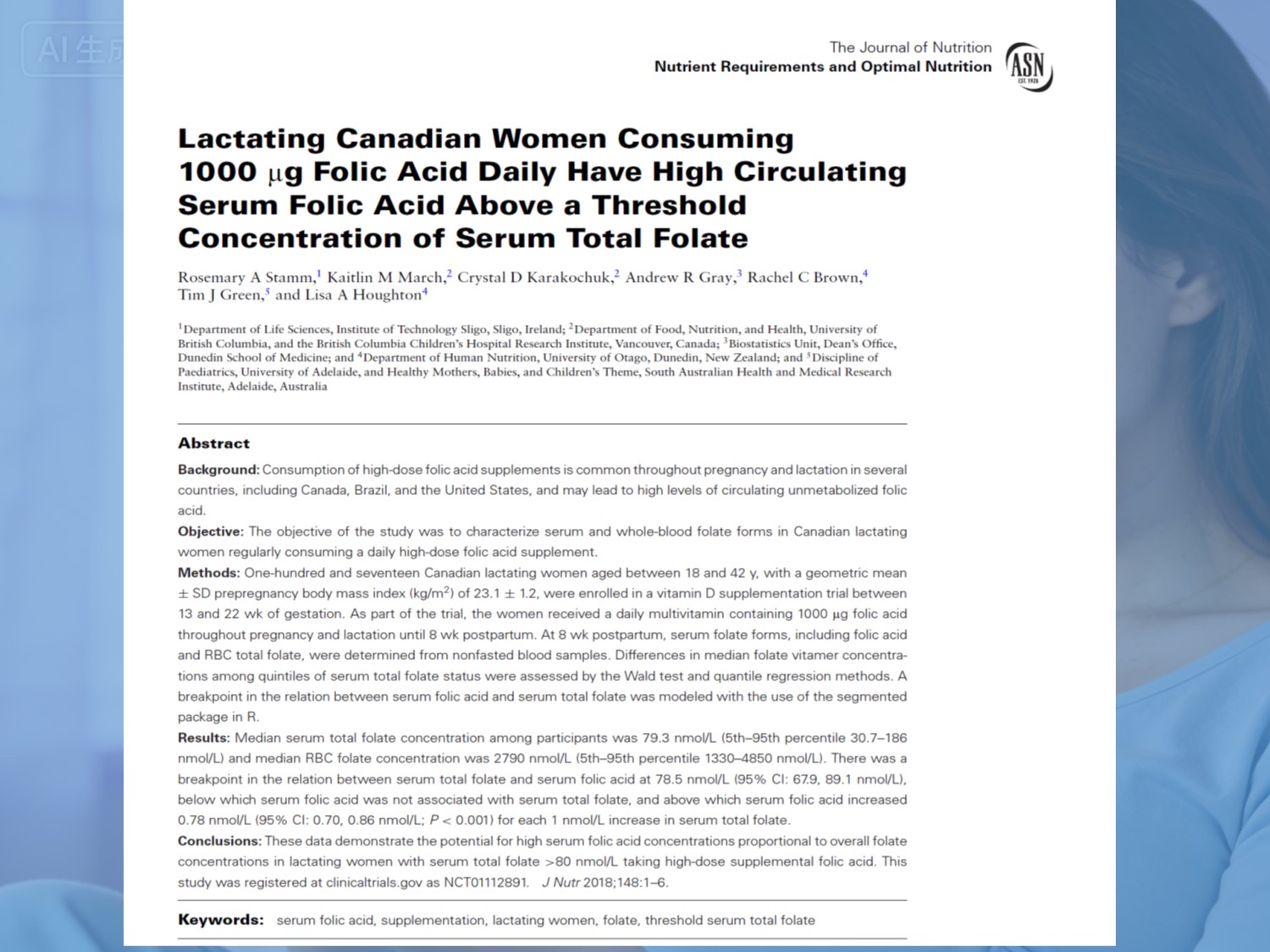 Studiens konklusjon er enkel: langsiktig daglig tillegg på 1000 μg folsyre kan føre til at nesten halvparten av ammende kvinner har "ubrukt og uutskillelig" umetabolisert folsyre stille suspendert i deres blodet.