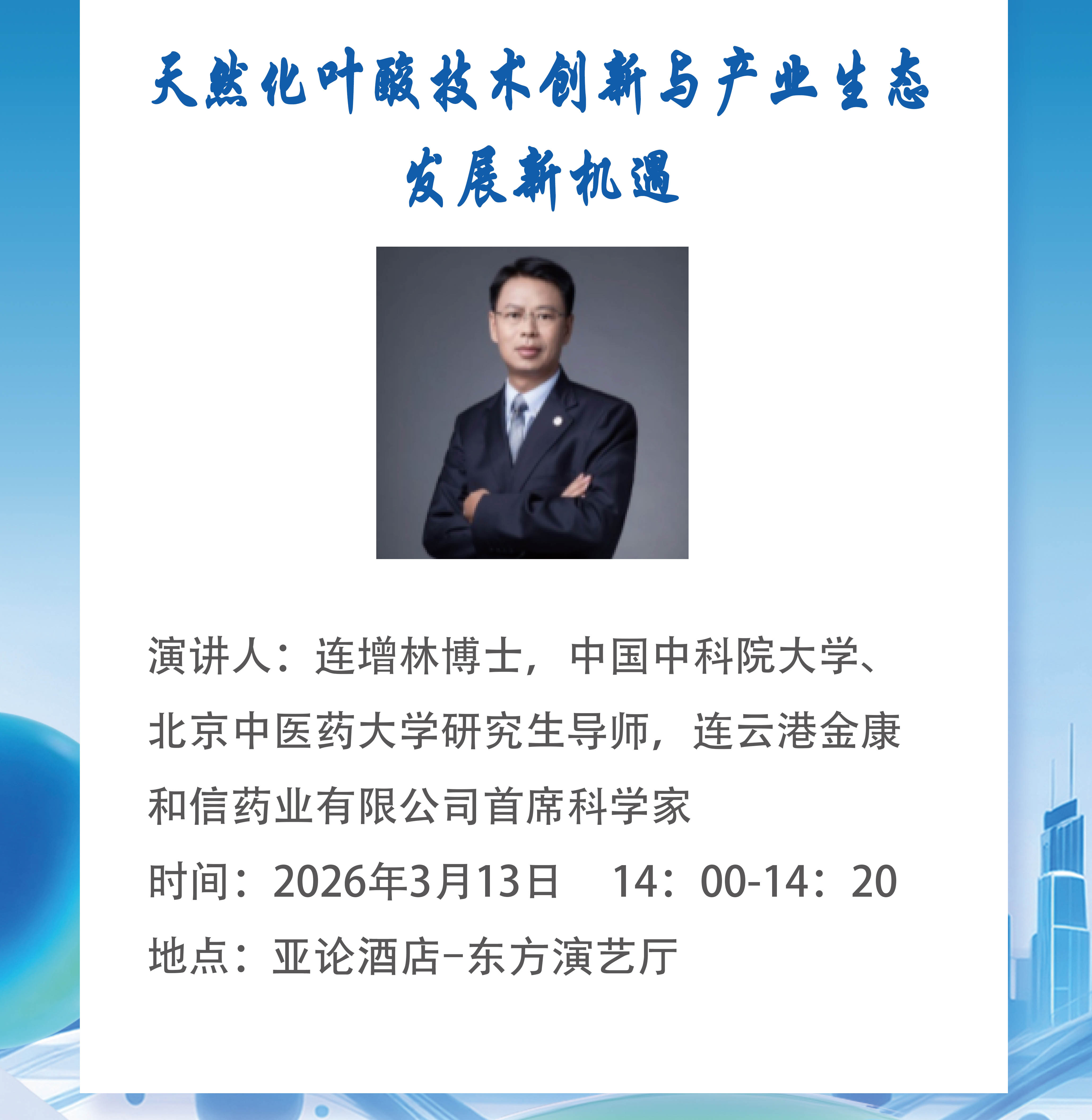 På denne utstillingen, Dr. Lian Zenglin, sjef Forsker ved Jinkang Hexin vil holde en hovedtale med tittelen Teknologisk innovasjon av naturalisering folat og nye muligheter for industri Økologisk utvikling 13. mars. Talen vil fokusere på tre kjerner retninger: Teknologiske fordeler ved naturalisering av folat; Diversifisert industrielle applikasjoner, og nye muligheter for globalt samarbeid. Det vil det lås opp banebrytende teknisk innsikt og utforsk praktisk og tilgjengelig industrielle innovasjonsmuligheter på stedet. Kolleger innen mat og helse industrien er oppriktig invitert til å delta, lytte, utveksle ideer, og i fellesskap utforske de uendelige mulighetene for industriell innovasjon og utvikling bemyndiget av naturalisering folat.
