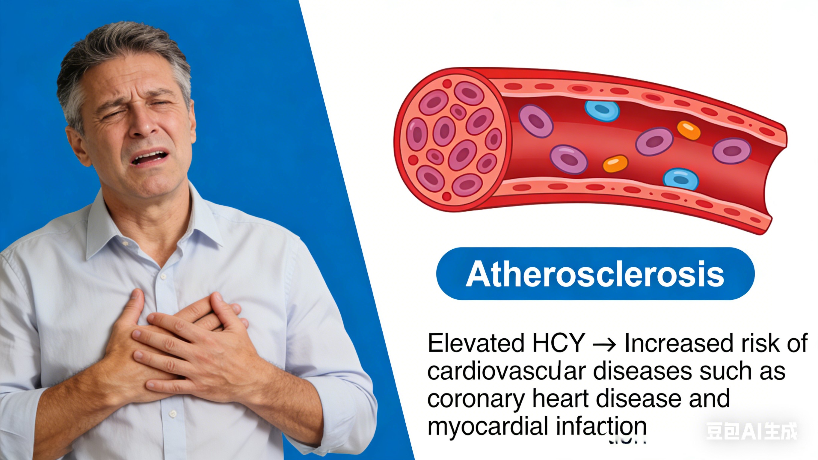 HCY i kroppen kan bare omdannes til ufarlige stoffer og utskilles jevnt under den synergistiske virkningen av folat og vitamin B12. Hvis folatinntaket er utilstrekkelig, kan ikke HCY metaboliseres normalt og vil akkumuleres i økende grad i kroppen. Som ikke-fjernbart metabolsk avfall i blodårer, tetter det gradvis kar, skader endotelet og sår skjulte farer for kardiovaskulær helse.